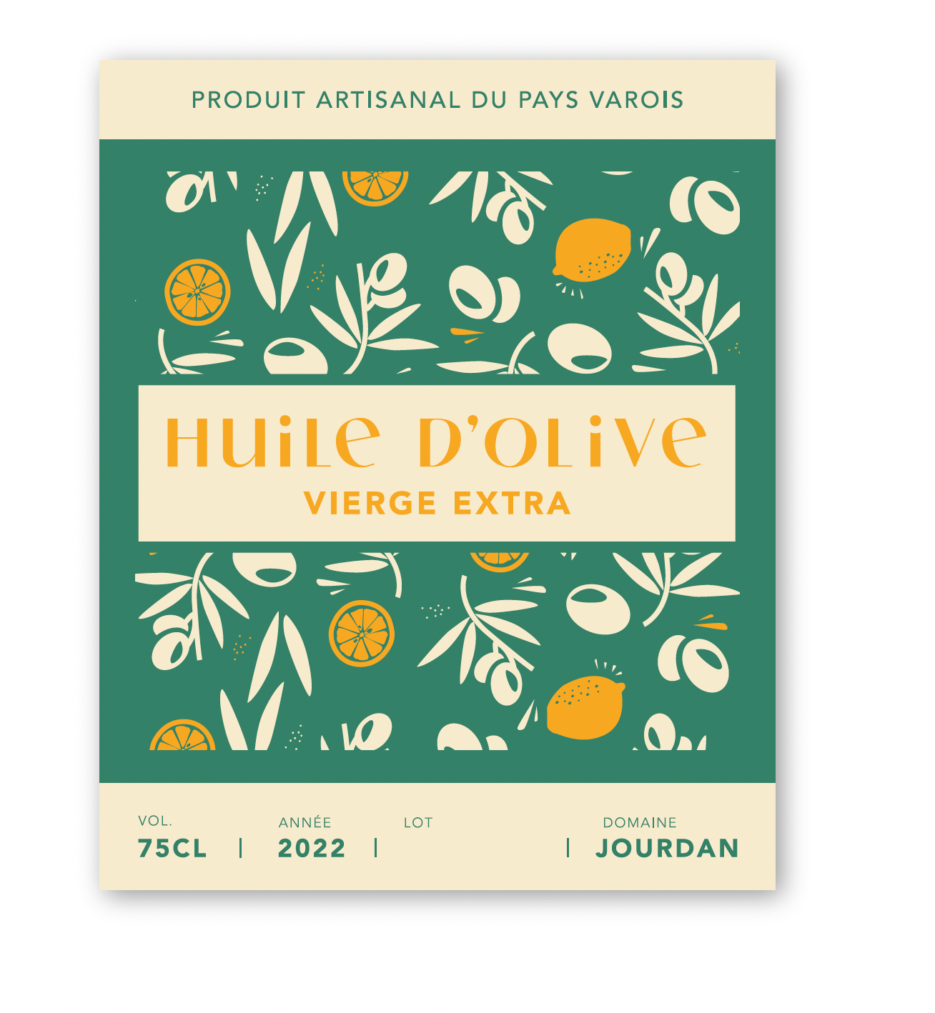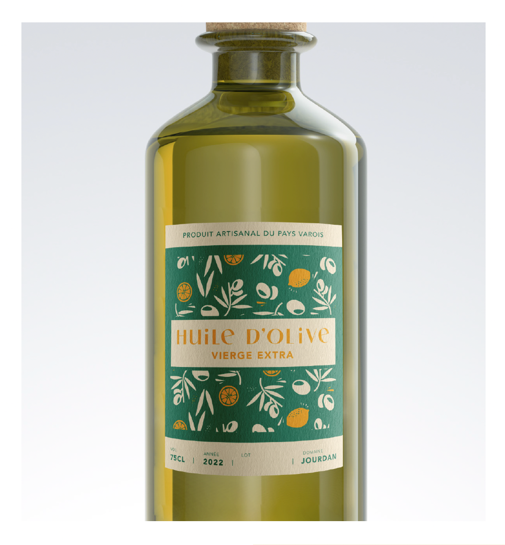 Création d'étiquette pour la production d'huile d'olive du Domaine Jourdan.